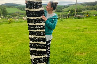 "My rugs have just arrived and they're stunning! Far softer, squishier and just even more incredible than I imagined they would be!" Chloe Harrison who sent me fleeces from her sheep Mabel and Blair to be made into two rugs, October 2022