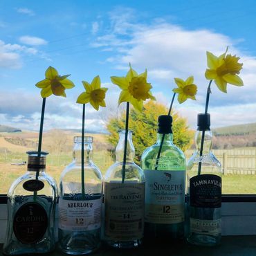 Our holiday home is the perfect place for up to 6 people to stay. With a double bedroom, a twin bedroom and a small double sofa bed. The large living room has views to the valley below and a picnic bench outside made of reclaimed whisky wood is a great spot for alfresco dining.